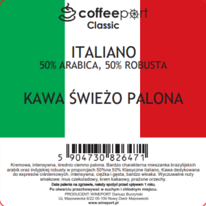 KAWA COFFEEPORT Classic ITALIANO 50% Arabica 50% Robusta 1KG ZIARNA