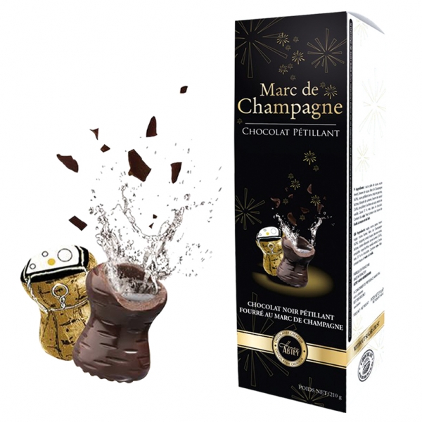 Składniki: cukier, masa kakaowa, cukier inwertowany, masło kakaowe, Marc de Champagne (6,0%), musujące słodycze (cukier, syrop glukozowy, laktoza, dwutlenek węgla, masło kakaowe) (3,6%), emulgator: lecytyna sojowa, ekstrakt z wanilii