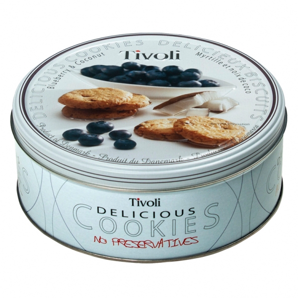 Ciasteczka TIVOLI Blueberry & Coconut 150g – ekskluzywna puszka