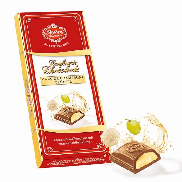 Mleczna czekolada alpejska (72%) z nadzienim Marc de Champagne (28%)
