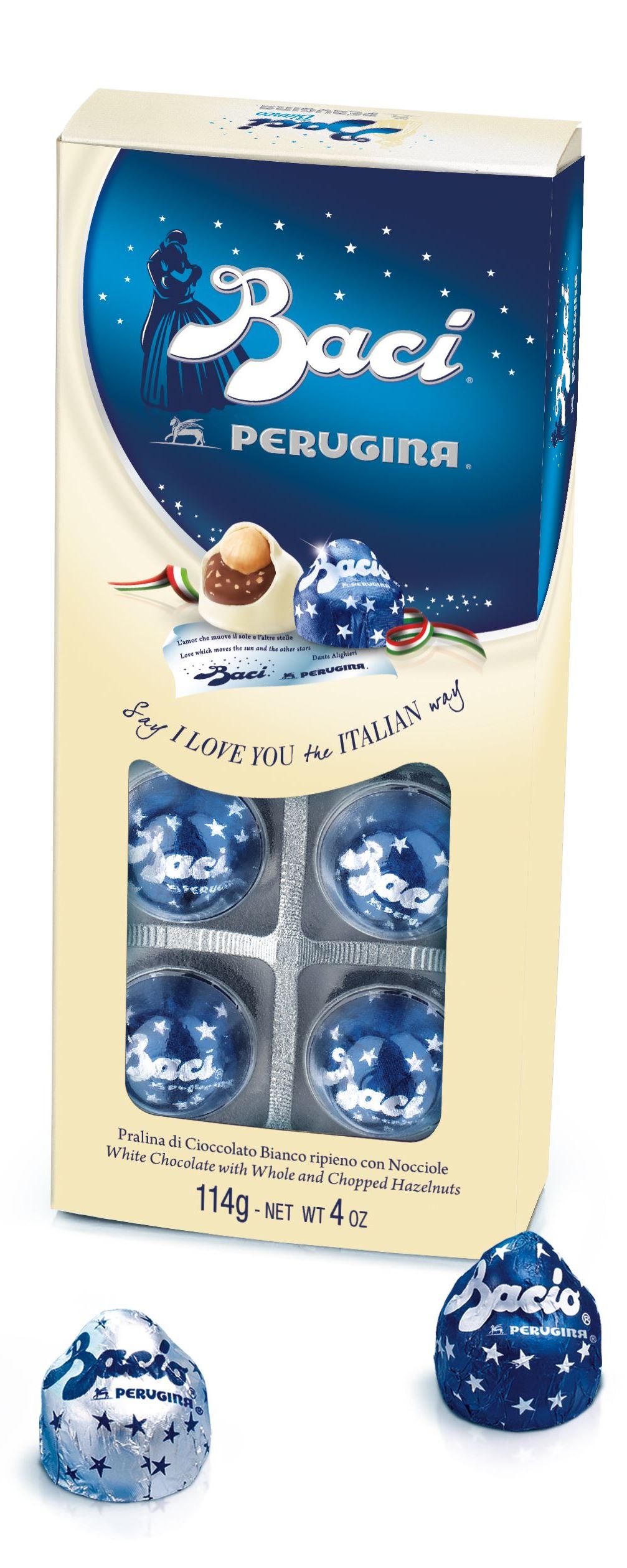 Każda z pralinek nazwana została BACIO – w języku włoskim oznaczające “pocałunek”.