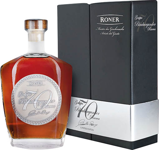 Limitowana edycja doskonałej grappy, wyprodukowana w celu uhonorowania 70 urodzin Pana Gunthera Ronera. Powstało jedynie 1300 butelek tego wyjątkowego, destylowanego w 2008r. z najlepszych wytłoków Pinot Noir, trunku. Zamysłem twórców było pokazać najlepsze cechy tej odmiany winogron w doskonałej interakcji z aromatem dębowej i wiśniowej beczki. W Nosie wyczuwalne łagodne nuty drewna z typowymi dla szczepu aromatami owoców leśnych, jagód i wiśni. W Ustach krągła i dobrze zrównoważona, z wyczuwalną odrobiną słodyczy pochodzącą z dębiny. Pozostawia w Ustach długi i ciepły posmak.