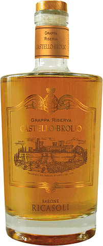 Grappa Riserva Castello di Brolio powstała w wyniku destylacji wytłoczyn po Chianti Classico. Swój delikatnie bursztynowy kolor zawdzięcza 18-to miesięcznemu dojrzewaniu w beczkach. Odnajdziemy w niej nuty kwiatowe, owoców jeżyny, sporo wanilii. W smaku jest gładka, krągła i aksamitna