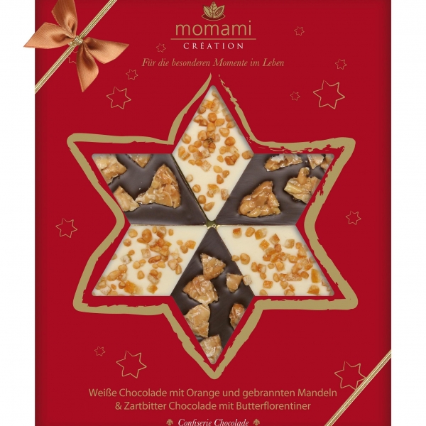 Ręcznie robiona Czekolada biała z kawałeczkami pomarańczy i prażonymi migdałami oraz gorzka z karmelem.