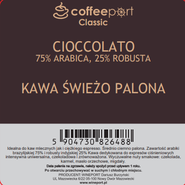 KAWA COFFEEPORT Classic Cioccolato 75% Arabica 25% Robusta 250g ZIARNA