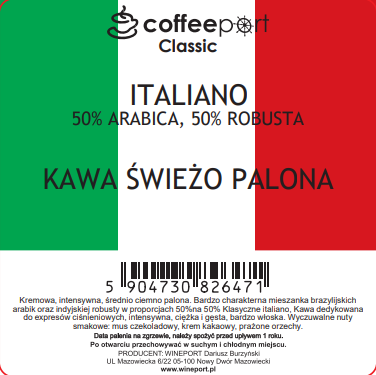 KAWA COFFEEPORT Classic ITALIANO 50% Arabica 50% Robusta 1KG ZIARNA