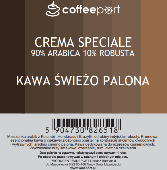 KAWA COFFEEPORT Crema Speciale 90% Arabica 10% Robusta 1KG Ziarna