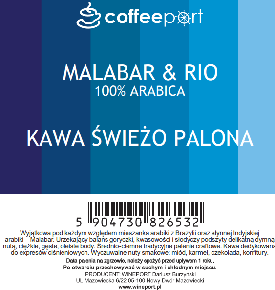KAWA COFFEEPORT Malabar & Rio 100% Arabica 250g Ziarna