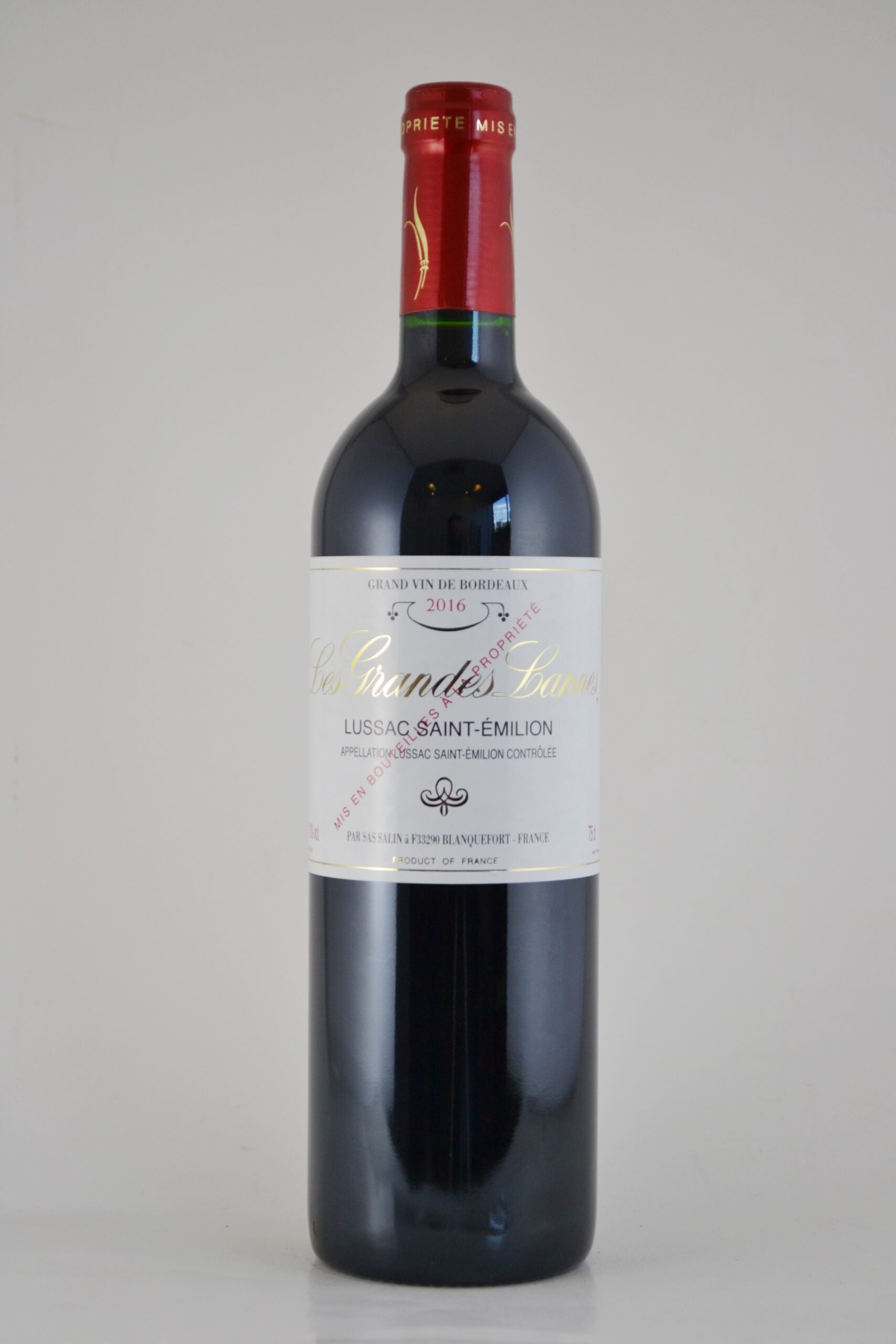 Wyśmienite wino z apelacji Lussac St Emilion AOC Bordeaux które zostało rozlane w posiadlosci.