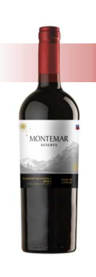 MONTEMAR RESERVA Cabernet Sauvignon , D.O. Curicó, producent Aresti Chile Wines Limitada 100% Cabernet Sauvignon; 13,5% alk. Atrakcyjne, czerwone, wytrawne wino, z którego 70% dojrzewało przez 12 miesięcy w dębowych beczkach. Przywodzi na myśl przypr…