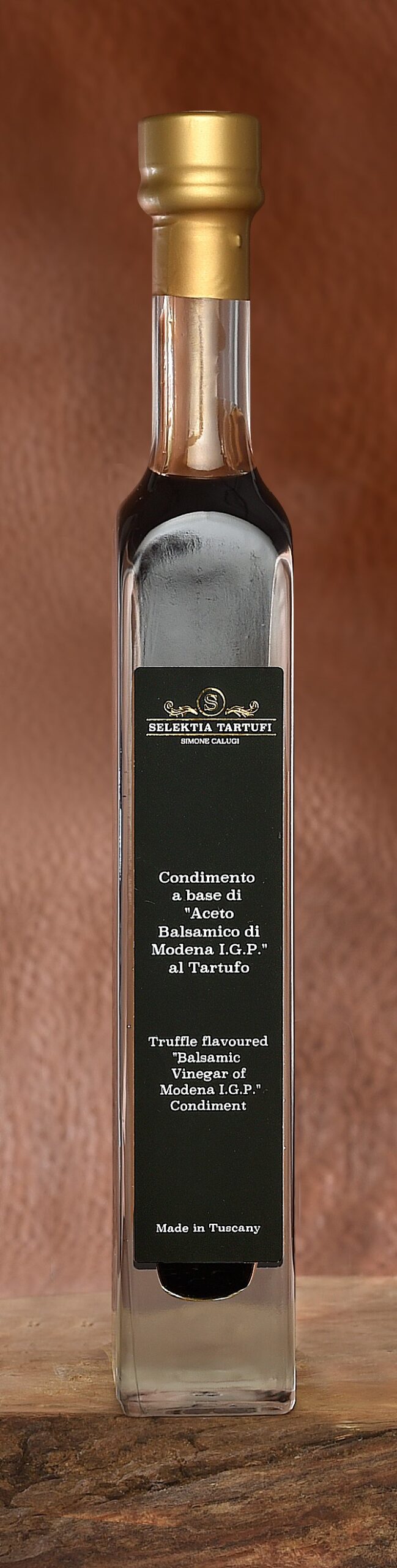 Ciekawa przyprawa, która gromadzi niezrównany smak octu balsamicznego Modena z cenną truflą. Służy do przyprawienia sałatek, grilowanego mięsa lub ryb, serów, owoców, lodów i deserów