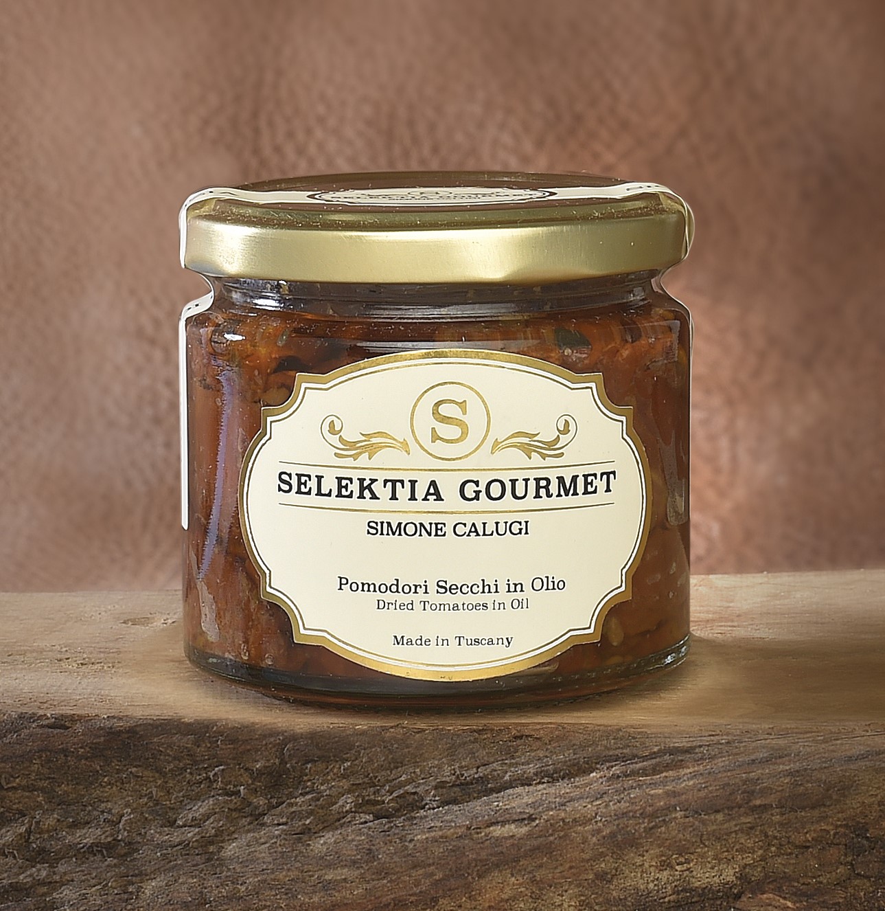 Suszone pomidory w oleju z aromatycznymi ziołami. Do stosowania jako przystawka lub dodatek do salami, gotowanego lub grillowanego mięsa.