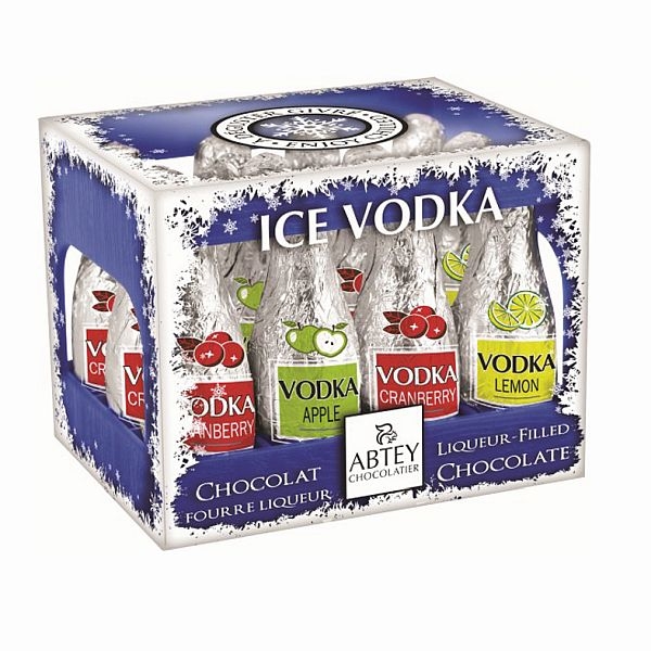 Składniki: cukier, pasta kakaowa, cukier inwertowany, masło kakaowe, wódka (5,5%), alkohol, aromaty, emulgator: lecytyna sojowa, ekstrakt waniliowy