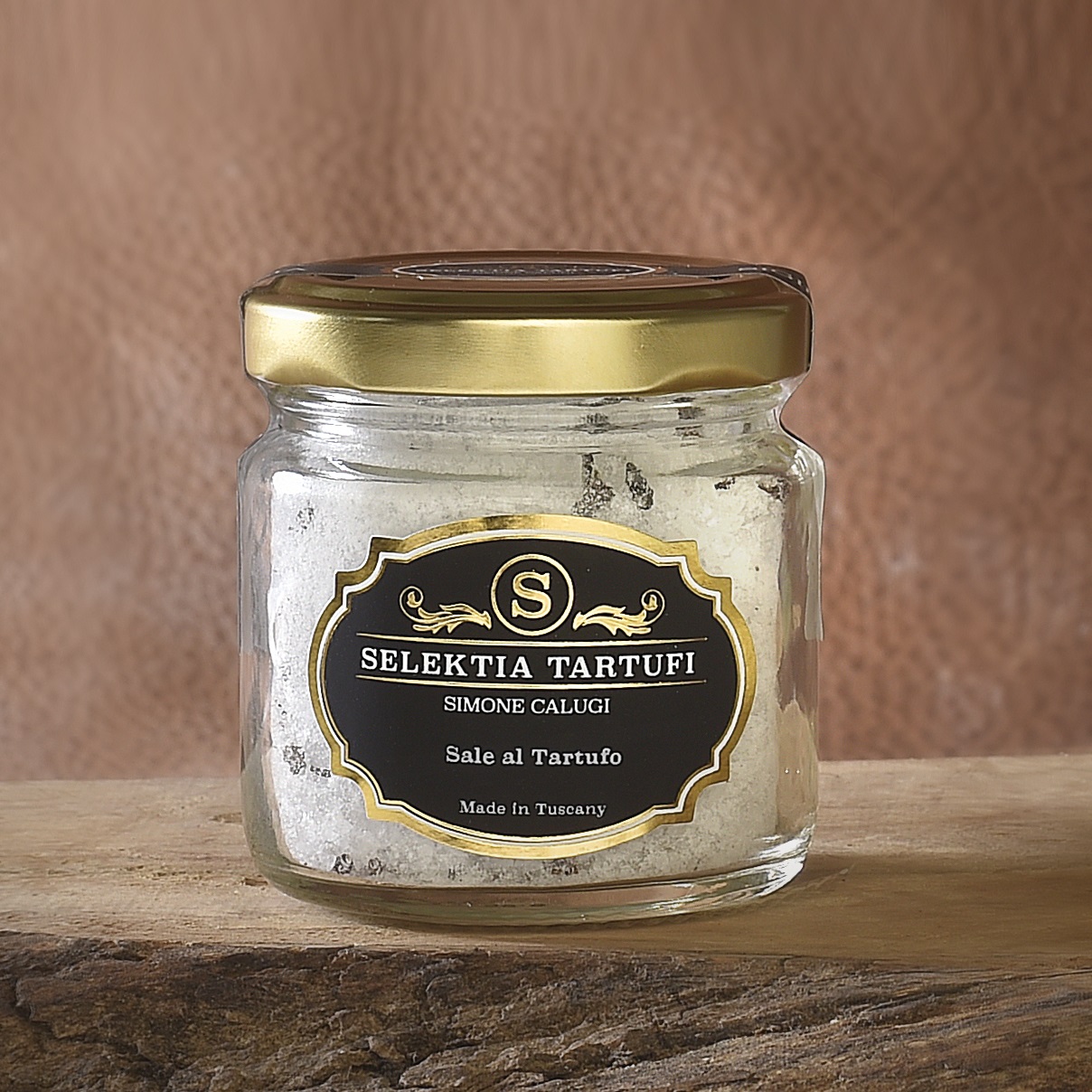 Sól kuchenna do gotowania z suszoną letnią truflą (Tuber Aestivum Vitt.). Idealna przyprawa do makaronu, risotto, mięsa, carpaccio, grillowanych ryb, jajek, surówek, ziemniaków i warzyw. od znanego włoskiego producenta przetworów premium z trufli SELEKTIA TARTUFI. 100G