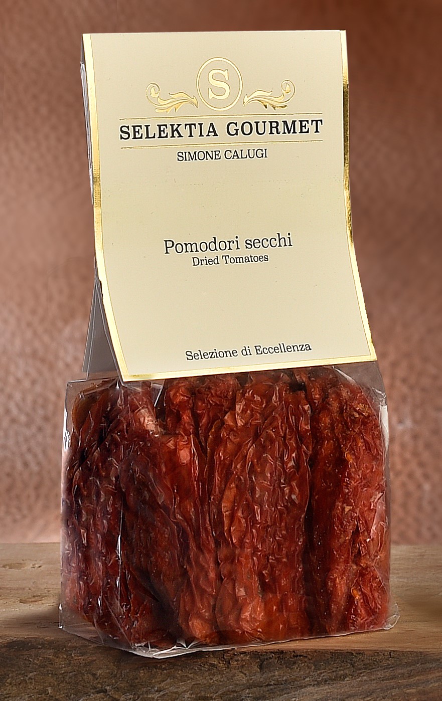 Suszone sekcjonowane toskańskie pomidory o wspaniałym i wyjątkowym smaku, polecane do przygotowania różnego rodzaju sosu, dekoracji i wykorzystania ich w oleju z oliwek. 100