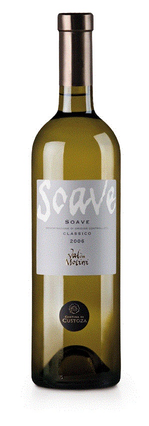 Orzeźwiające, doskonałe jako aperitif. Wino to jest szczególnie polecane do lekkich dań mięsnych, rybnych oraz potraw z makaronu. Produkowane z ręcznie zbieranych winogron szczepów Garganega (70%) i Chardonnay (30%). Słomiano-żółty kolor ze szmaragdowymi refleksami, intensywny, choć subtelny bukiet, w którym dominują nuty cytrusowo-kwiatowe z odcieniem migdałów i pieczonych jabłek. Wino miękkie, świeże i orzeźwiające, o przyjemnym, kremowym zakończeniu. Nazwa tego wina pochodzi od małego miasteczka Soave słynącego z produkcji wina, leżącego na wschód od jeziora Garda w regionie Wenecji.